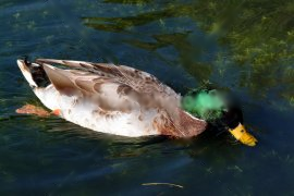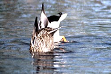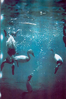 often go 20 feet underwater to find food. Extra large, webbed feet